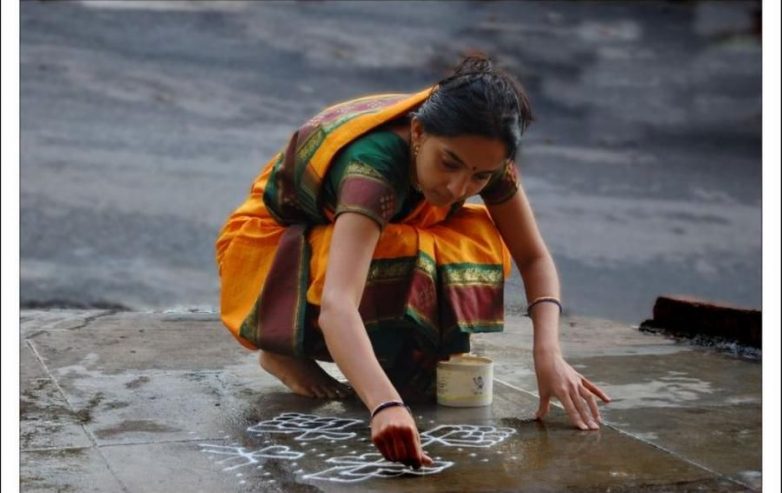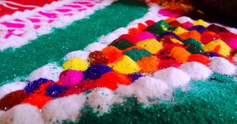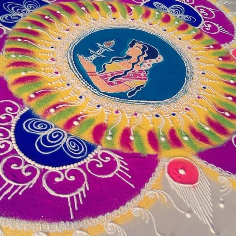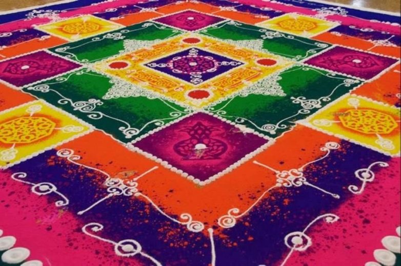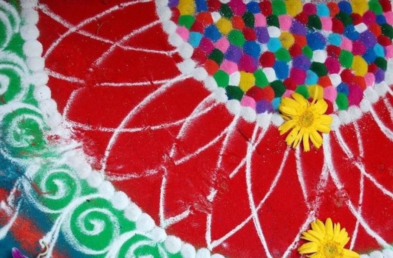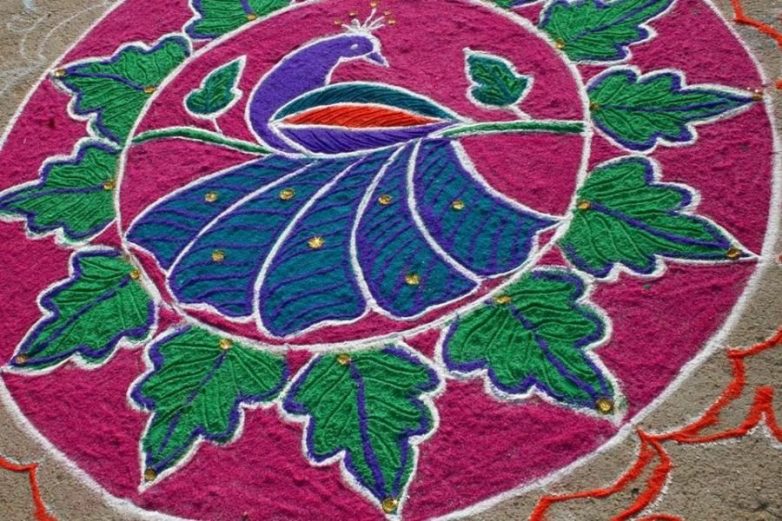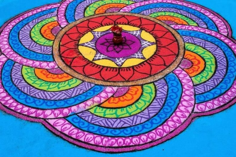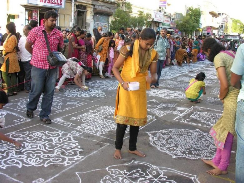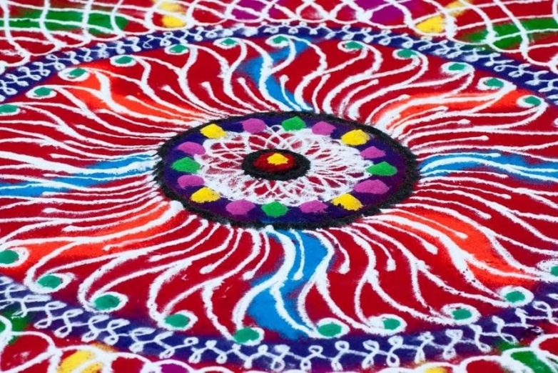 6. Во время фестивалей Дивали, Онам и Понгал религиозные узоры создаются больших размеров, нежели обычно. Материалов и краски также становятся разнообразнее и ярче.