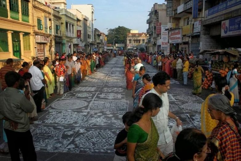 7. Во время проведения свадебной церемонии ранголи рисуются вдоль всей улицы, где будет проходить процессия.