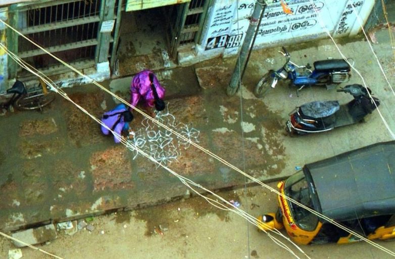 3. Ранголи — временное искусство. Не проходит и суток как рисунок развеивается ветром, или размывается дождем. Но, несмотря на это, около миллиона индийских женщин ежедневно создают узоры около своих домов. Эта традиция соблюдается уже не одно столетье.