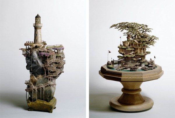 Японец Таканори Аиба (Takanori Aiba) создает удивительные миниатюрные композиции, с элементами городских и природных пейзажей с большим колличеством мельчайших деталей.