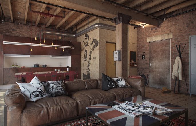 Проект которой разработали специалисты из белорусской архитектурной студии Nordes. Стиль Лофт формируют интерьерные решения и предметы, живущие собственной жизнью, не посягая на чувство свободы и комфорта своего владельца.