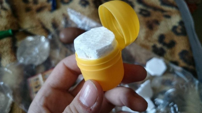 Далее самое трудное — собрать это все вместе. Шоколад я склеивал следующим образом: лезвием ножа нагретом в кипятке нагревал шоколад в местах реза бритвой, проделывается это с обеими половинками. Шоколад застывает довольно долго что дает время все это аккуратно проделать. Далее желтый контейнер кладется внутрь половинок, которые склеиваются. Получается вот так: