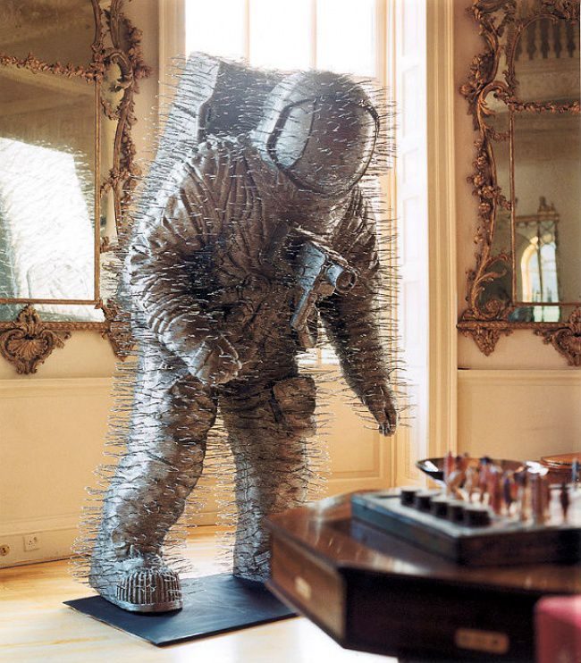 Шотландский скульптор Дэвид Мэч создает из обычных «плечиков» для одежды огромные скульптуры: среди экспонатов есть астронавт, олень и горилла.