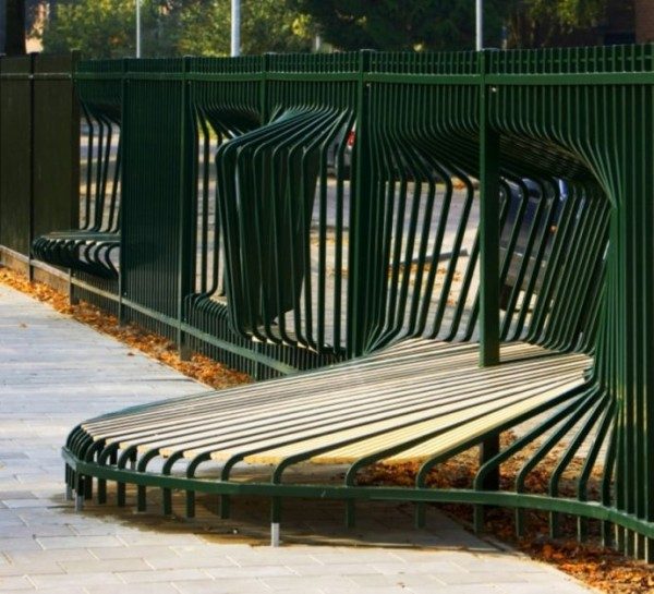 6. Забор Flex. Эта ограда вместе с некоторыми другими инсталляциями находится в лесу города Линкольн штата Массачусетс. Именно внешний вид листьев здешний деревьев вдохновил дизайнера Mikyoung Kim на создание забора Flex, медные балки которого напоминают сети жилок у листьев.