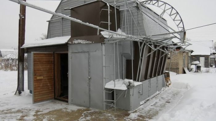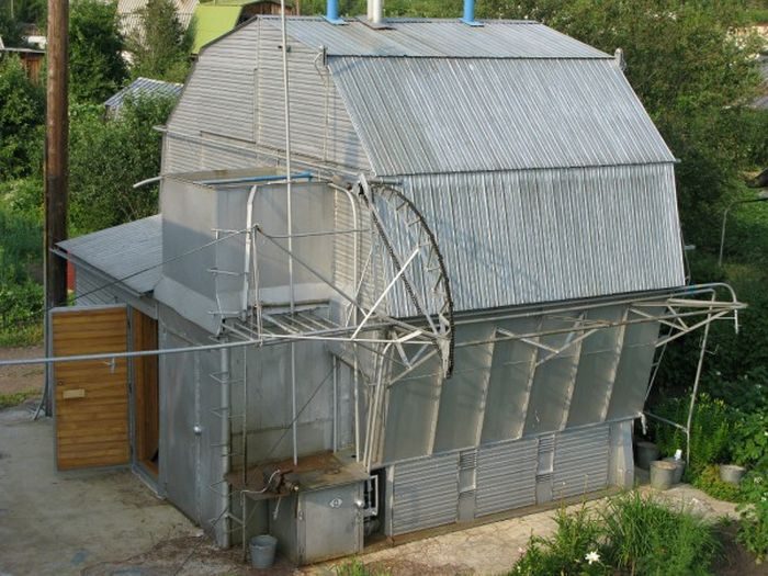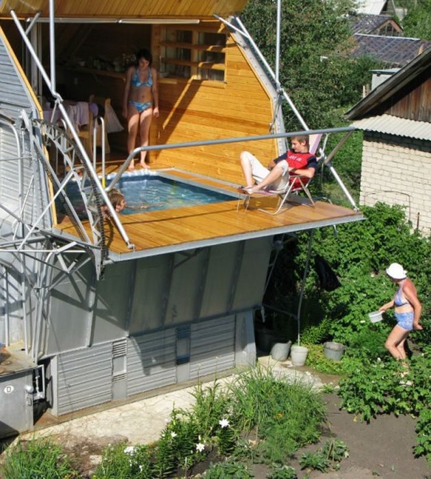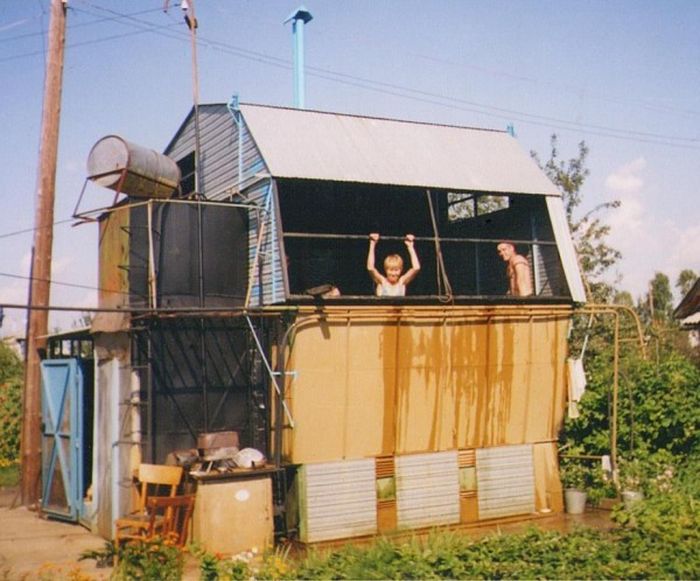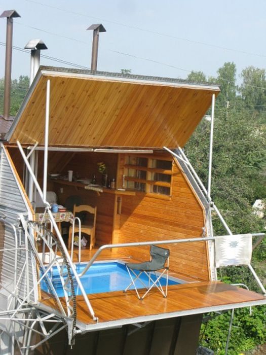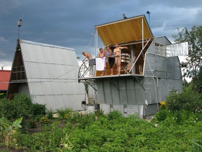 Один народный умелец на своем дачном участке сделал своими руками весьма интересный вариант дома-трансформера.