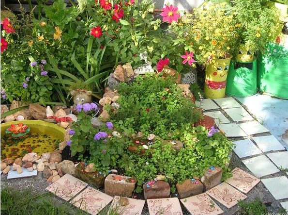 Немаловажно и озеленение. Детская площадка своими руками должна быть не только безопасной и практичной, но и достаточно эстетичной. Ощущение прекрасного формируется у детей с раннего детства под влиянием окружающих предметов. Для детской зоны лучше выбирать разнообразные растения. Отлично подойдут не ядовитые декоративные кусты, ели, туи, гортензии. Если у вас запланирована небольшая клумба, посадите яркие но не дорогие цветы-однолетки.