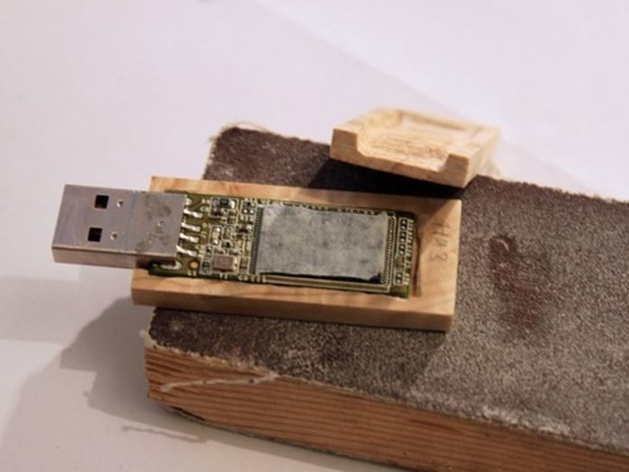 На одной чурке был замечательный нарост, из которой автор решил сделать флешку.