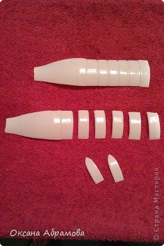 Из оставшихся верхних частей (которые мы отрезали, когда закрывали горловину), нарезаем маленькие перышки.