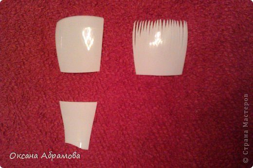 Для изготовления «ляжек», вырезаем среднюю часть бутылки, разрезаем ее пополам. Из полученных прямоугольников складываем конвертики.