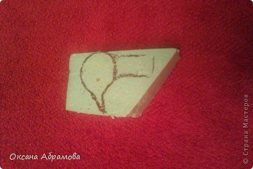 Приступаем к вырезанию формы головы. Для этого нам необходим кусок пенопласта 7 см*10 см.