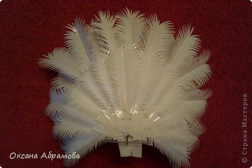 Снова переворачиваем и прикрепляем следующий ряд перьев.