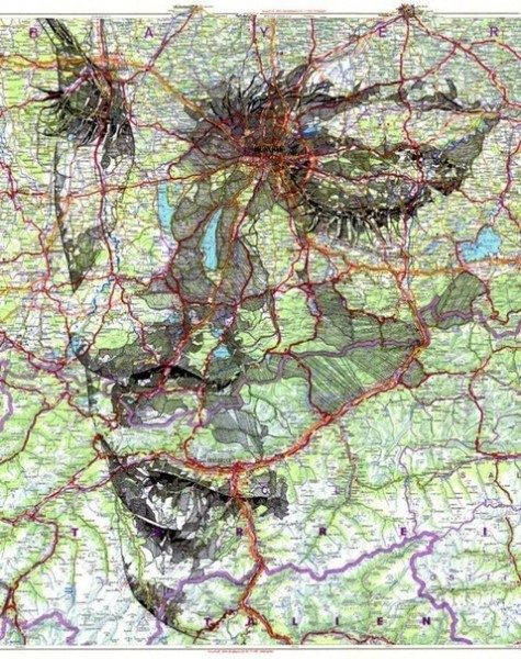 Очертания лиц на картах от британского художника Эда Файрберна.