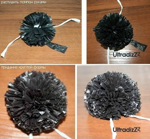 Коврик из помпонов, сделанные из мусорных пакетов