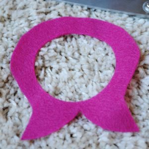 К полученной детали прикалываем полукруг выкройки для лица и вырезаем по контуру.