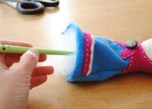 Набиваем куклу наполнителем и зашиваем отверстие.