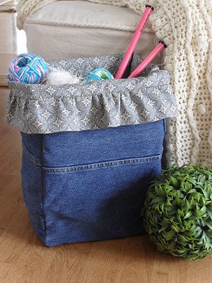 16. Из старых джинсов можно сделать красивый пуф
