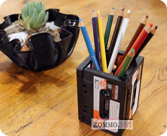 Подставка под карандаши из старых кассет