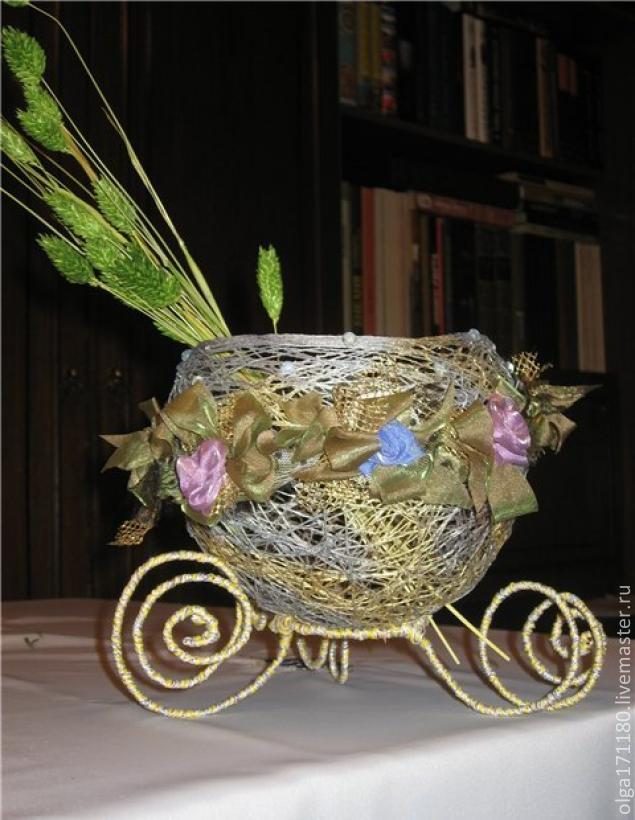 Вместо нитки можно взять тонкую медную проволоку и так же намотать ее на шар.