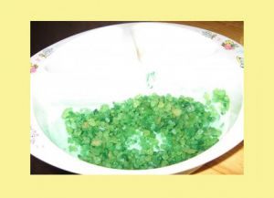 В качестве травы используем крупную морскую соль, смешанную с зеленой гуашью и клеем пва. Приклеиваем эту «травку» у основания дерева.
