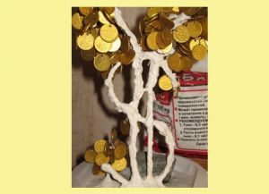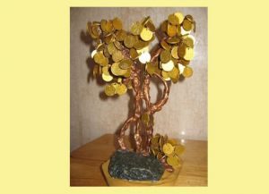 Для украшения его кроны рукодельницы используют самые различные материалы: бумажные полоски, салфетки, мешковину, ракушки, органзу, атласные ленты и даже зерновой кофе. А знаете ли вы, что по-настоящему денежное дерево можно смастерить, используя обычные монеты? Это немного хлопотное занятие, но красота готового изделия того стоит. Давайте узнаем, как сделать топиарий из монет!