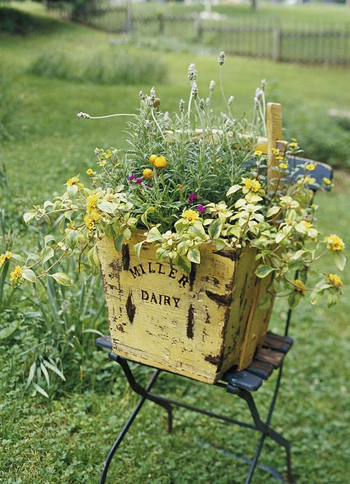 В качестве контейнеров сгодятся и старый стул, и скамья, и отслужившее кресло…