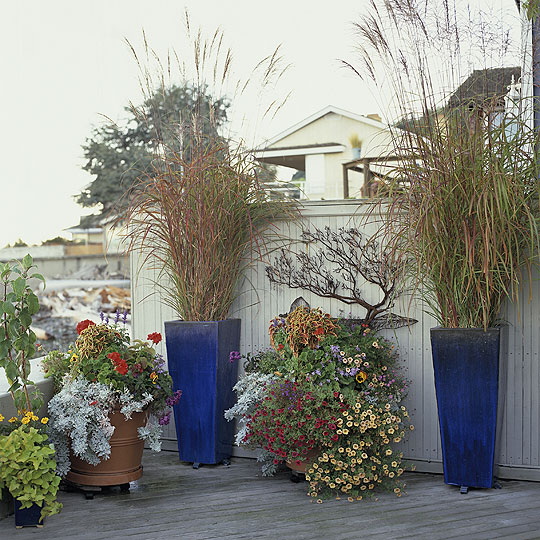 А такие горшочки можно расставить вдоль стены дачи. Или по бокам крылечка.