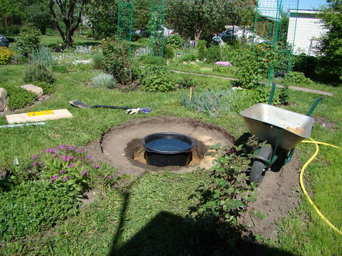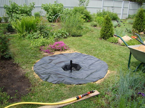 1. Убрать небольшой квадрат участка для ямы. С помощью лопаты необходимо вырыть яму, не глубокую в виде круга, диаметром до 1.5 метра.