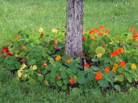 Правильно подобранные «соседи» будут не только удерживать влагу, они еще и станут биологической защитой для деревьев. Так, ландыши в приствольной клумбе уберегут черешню и вишню от плодовой гнили и монилиоза. Бархатцы, календула и настурция защитят яблоню и вишню от тли и нематод.