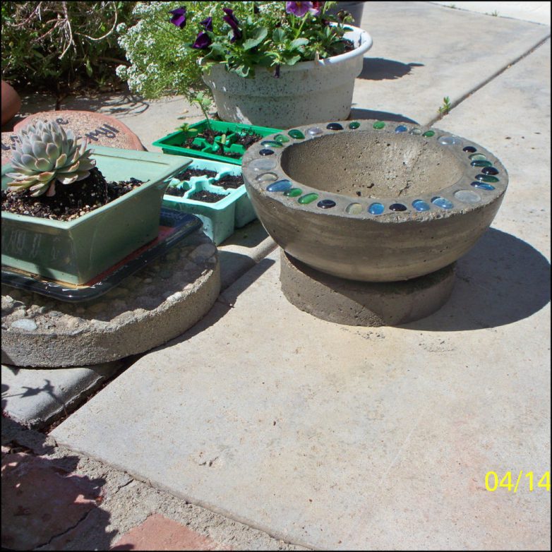 использовать бетонный раствор можно для различных самодельных форм чаш и подставочек.