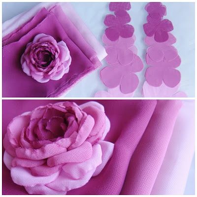 Ведь цветов придется сделать ОЧЕНЬ много! Но это пожалуй и есть самое трудное, т.к. сами цветы делаем так же, как в МК «Цветы из ткани» только без окрашивания, а красивых и плавных переходов цвета попробуем добиться при помощи подбора ткани.