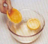 2. Поместите кору апельсина в чашку с горячей водой, добавьте 1 ложку соды (без горки).