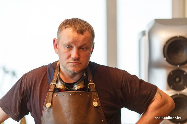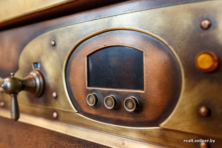 Как вы уже, наверное, поняли, Дмитрий Тихоненко — человек основательный, поэтому вскоре он создал белорусский сайт, посвященный стимпанку, и, по сути, стал одним из главных движителей этой культуры в нашей стране, при этом оставаясь по-своему уникальным. Если у большинства стимпанкеров основная цель — создать образ, бутафорский костюм, то у Дмитрия каждая вещь, которую он изготовил, функционирует. На шее у мастера висят защитные очки, или, как их еще называют, «гоглы», на поясе — кожаный фартук, в таких его постоянно можно увидеть за станком, так что на стимпанк-вечеринки он приходит в повседневной рабочей одежде.