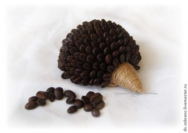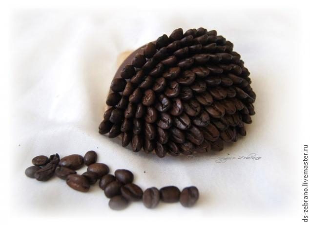 Приклеиваем носик из зернышка кофе, подбираем бусинки для глазок, приклеиваем декор.