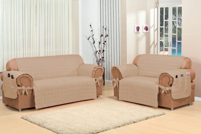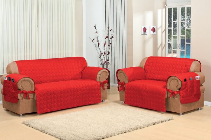 Понравилась мне идея чехлов для дивана и кресел. Можно сшить, это совсем несложно.