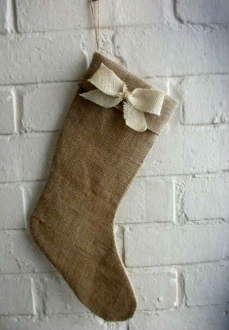 Кроме того из лент мешковины, можно изготовить декоративные бантики, милые цветы, сшить сердечки или крупные носочки-сапоги на камин.