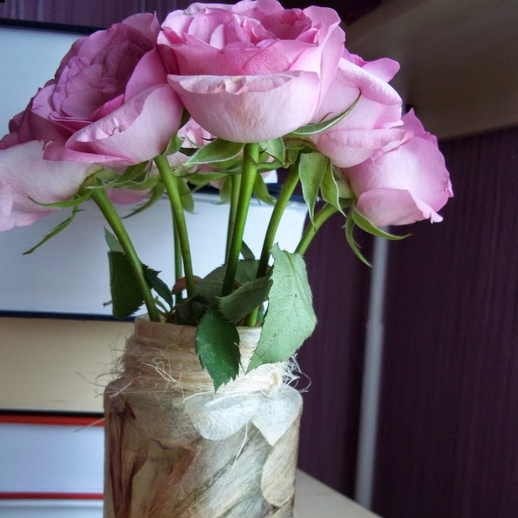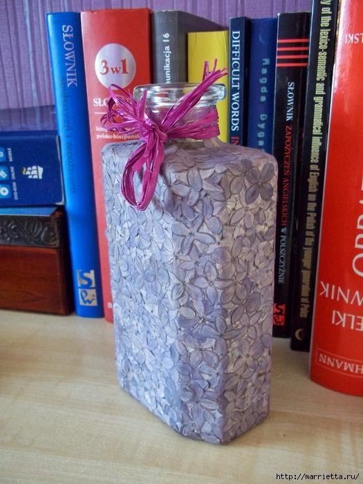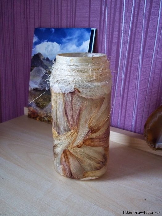 Посмотрите, какая красивая и необычная получается текстура. Из самой обычной баночки или бутылки можно своими руками создать вазу для цветов