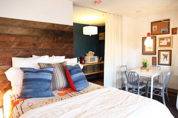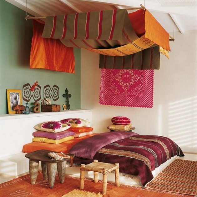 Выход: собирать деревянный каркас ширмы с тремя или более секциями, который затем обтянуть тканью. Средние секции должны быть по ширине равны ширине кровати, боковые секции могут быть немного шире средних. В этом случае ширма действительно станет ширмой – защитит спящих на кровати от яркого солнца. Такую ширму можно закрепить на стене, а можно просто поставить за кроватью, оставив мобильной.
