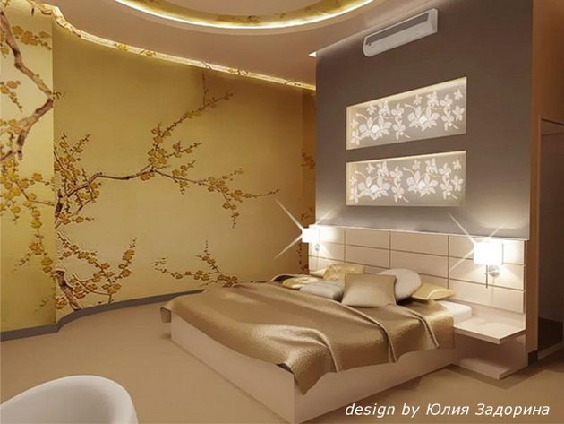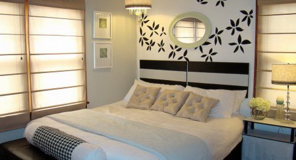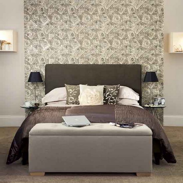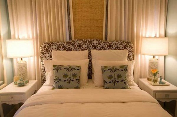 Редко кто ставит кровать посередине спальни. Чаще всего она стоит либо у голой стены, либо спинкой к окну. В случае с окном для того, чтобы оформить изголовье, достаточно подобрать красивый текстиль для окна, и проблема будет решена. Но если же кровать ставят спинкой к стене, то тут открывается широкое поле для полета фантазии.