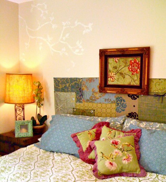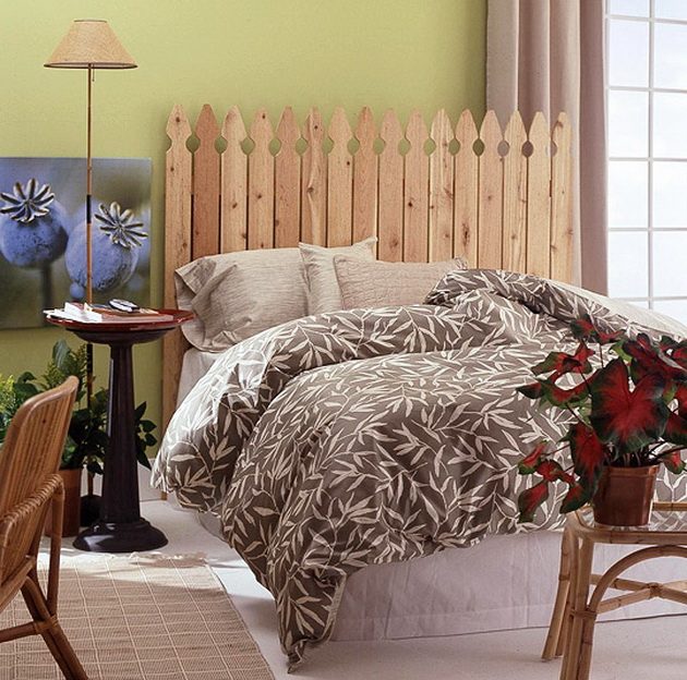 Выход есть: соорудить изголовье кровати самостоятельно, благо обилие материалов для декора и отделки велико. Как и велико количество вариантов декора изголовья. Самый главный нюанс при этом – использование материалов, которые можно мыть, ну или, в крайнем случае, предусмотреть возможность снятия ткани и последующей стирки. Рассмотрим несколько вариантов обновления и декора изголовья своими руками.