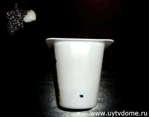 В образовавшиеся отверстия продеваем нить, которой и будем в дальнейшем, декорировать вазу. Затем сюда, в стаканчик с нитью, вливаем клей ПВА.