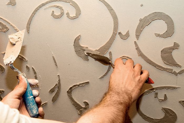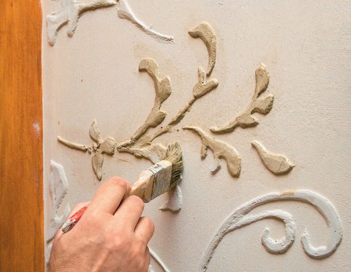 Можно купить готовую массу для создания рельефа или же выполнить его из гипсовой шпаклевки. Трафареты тоже продаются в магазинах, но подходящий удается найти не всегда. Мы покажем, как изготовить трафарет для объемной отделки стены самому. Если вы нехудожник, поищите идеи для создания узора в образцах обоев