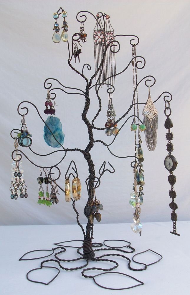 Этот тип подставок можно также отнести к группе «самодельных», ведь их проще всего сделать самим. Но мы решили сказать о них отдельно. Это безусловно креативный и оригинальный способ размещения украшений, ведь вам нужно только подобрать подходящую ветвь — с как можно большим количеством мелких сучков. Чтобы этот будущий органайзер как можно лучшим образом вписался в интерьер, покрасьте её краской в ваш любимый цвет.