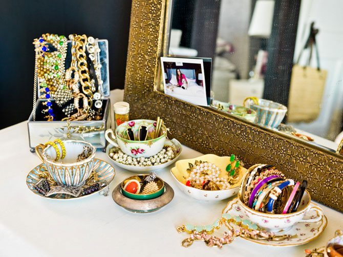 Это способ нам известен ещё от бабушек. С тех времён, когда и речи не было о подставках, всё хранилось или в шкатулках, или на блюдечках в ящиках комода. Выделите для этой цели сервиз, или ещё лучше — чашки или блюдца, купленные в разных странах в качестве сувениров. Тогда вы каждый раз будете вспоминать то или иное путешествие. На блюдцах очень удобно хранить браслеты и ожерелья, ведь они по форме повторяют круг. Серьги можете просто зацепить ушками за края чашки — тоже просто и удобно.