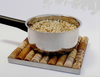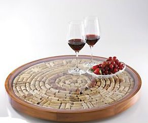 Очень удачное решение изготовления из пробок — подноса. Более того, мне кажется это лучшее решение применения пробок, настолько гармонично смотрится дерево и стекло, обрамляющее такой простой бросовый материал, как винная пробка.