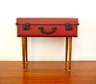 Несколько чемоданов, поставленных друг на друга, вполне могут служить тумбочкой или кофейным столиком. Особенно стильно смотрится композиция из разноцветных чемоданов.