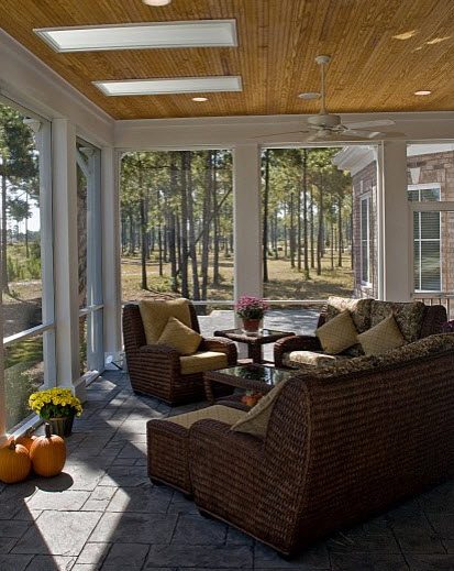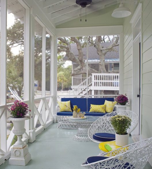 Сегодня большую популярность приобрели раздвижные стены, так это удобно во всех отношениях. Раздвинув стены, вы легко превратите веранду в открытую летнюю террасу. Классическая веранда должна быть светлой, поэтому с 2-3 сторон устанавливаются большие окна. Желательно, чтобы входная дверь также была частично остекленной, чтобы придать пристройке еще большую легкость.