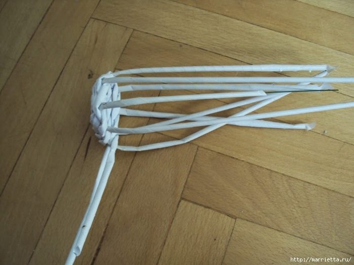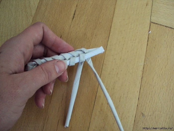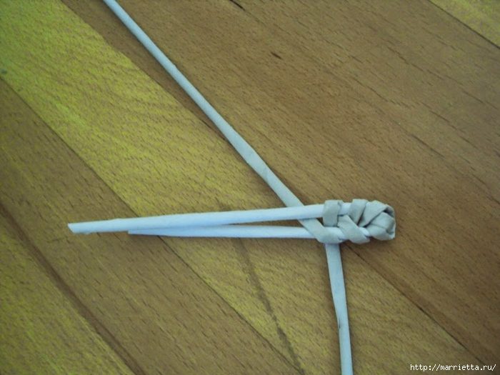 Добавляем вспомогательную трубочку и плетем по кругу «веревочкой»