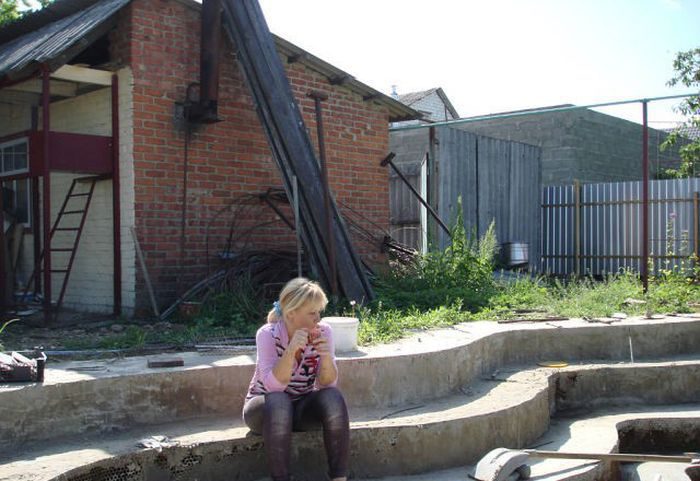 Cемья своими силами построила шикарный бассейн на заднем дворе своего загородного дома в Краснодарском крае.