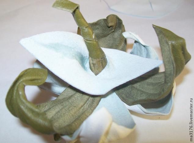 Достаем лепестки и отжимаем хорошо в кулаке, потом расправляем и даем немного подсохнуть, чтобы не было видно клея.
