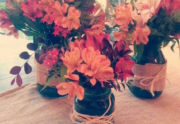 Обыкновенную консервную банку можно обмотать верёвкой и получится замечательная эковаза. Просто и стильно. Хорошо известную стеклянную банку тоже можно использовать в качестве вазы для цветов. А чтоб выглядела она более стильно и оригинально, понадобится кусок домотканой ткани и бечёвка.